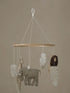 Begebe dich mit diesem handgefertigten Mobile bequem von deinem Kinderzimmer aus auf eine heitere Safari. Mit einem sanften Elefanten, einem majestätischen Löwen und einer hoch aufragenden Giraffe, die alle zwischen zarten weißen Blättern eingebettet sind, ist es eine perfekte Mischung aus Abenteuer und Ruhe. Dieses mit Liebe und Sorgfalt gefertigte Mobile verleiht jedem Raum einen Hauch von Wildtiermagie, lädt zu süßen Träumen ein und regt die Fantasie in beruhigenden weißen, grauen und sanften Farben an.